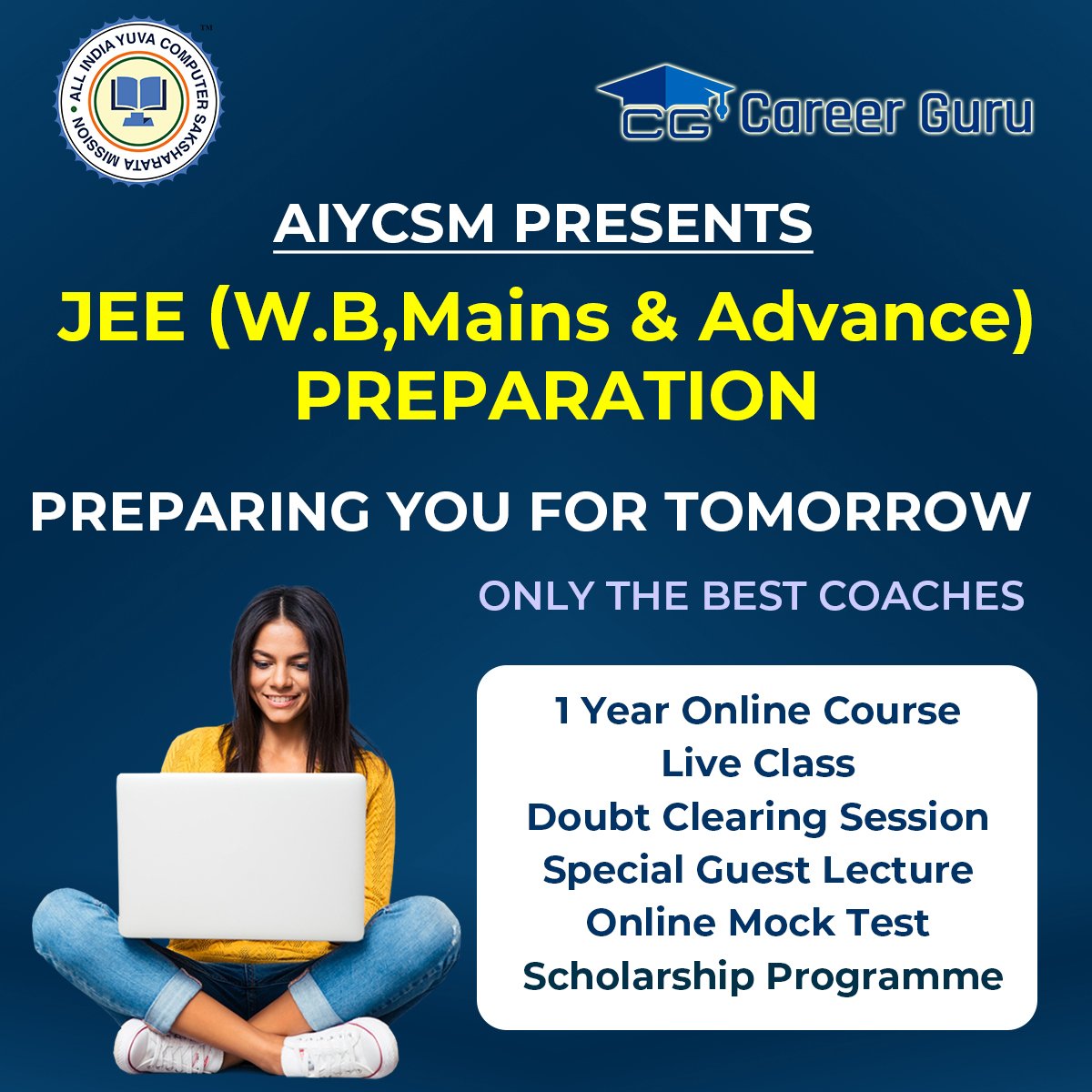 AIYCSM, All India Yuva Computer Saksharata Mission offers vocational and computer learning programmes as well as personality development programmes in an interactive tutorial system with a systematic & scientific curriculum. We offer organized regular classes along with recorded online classes and interactive Study Materials, which make AIYCSM the best partner of a student in his/her journey in career. Our guidance helps a student in accomplishing endeavour and be confident. We help to learn, grow and ultimately to become established and successful in life.